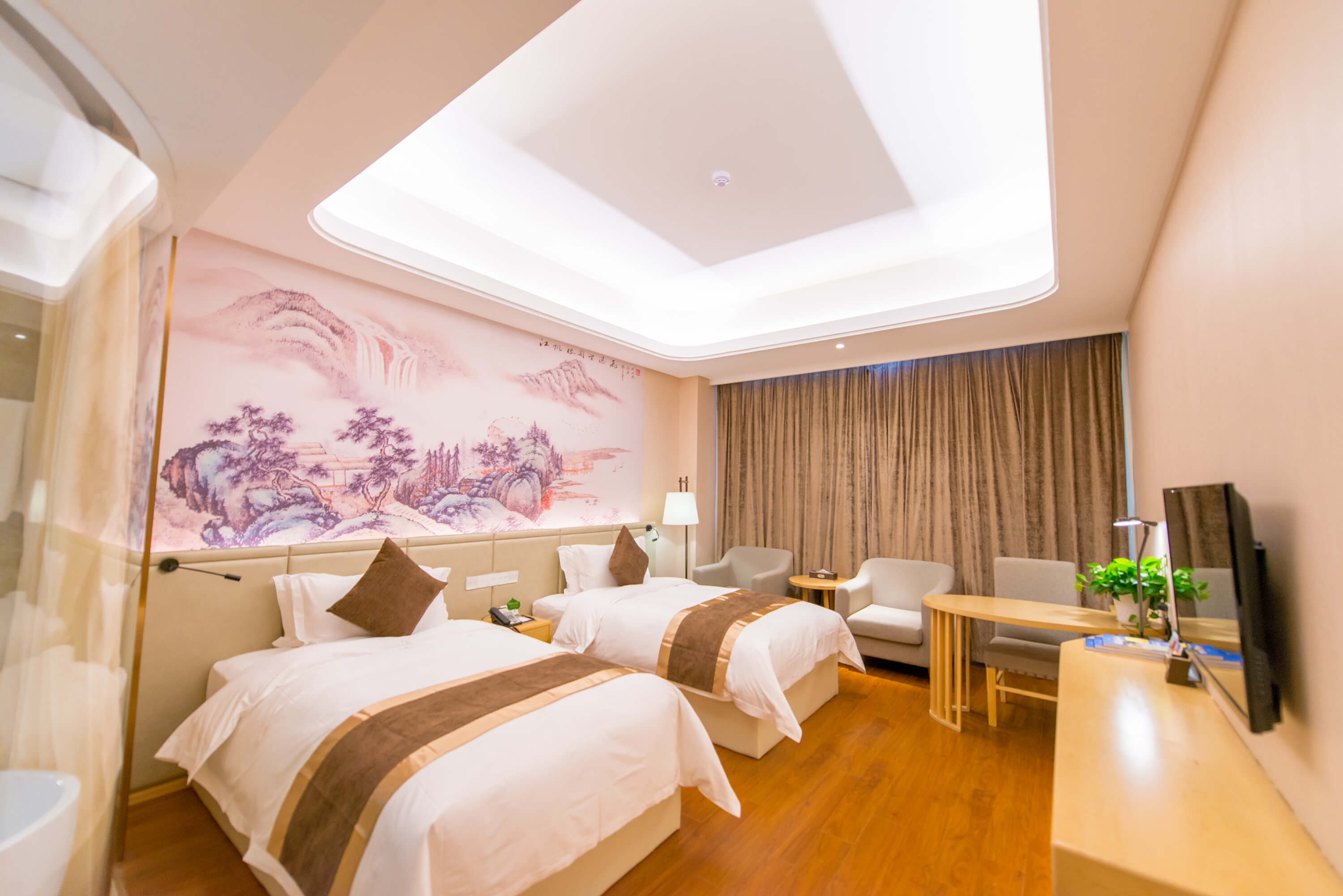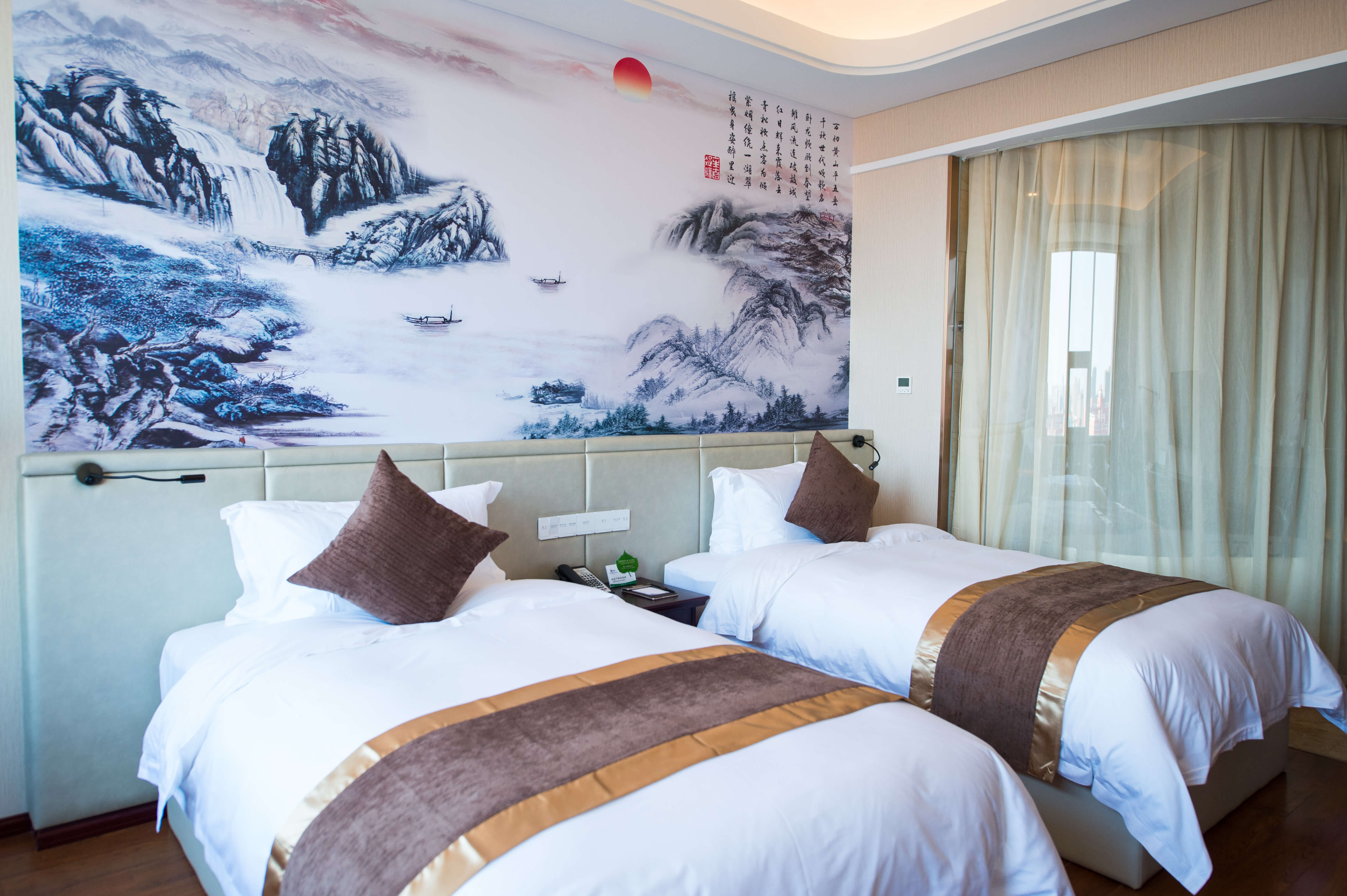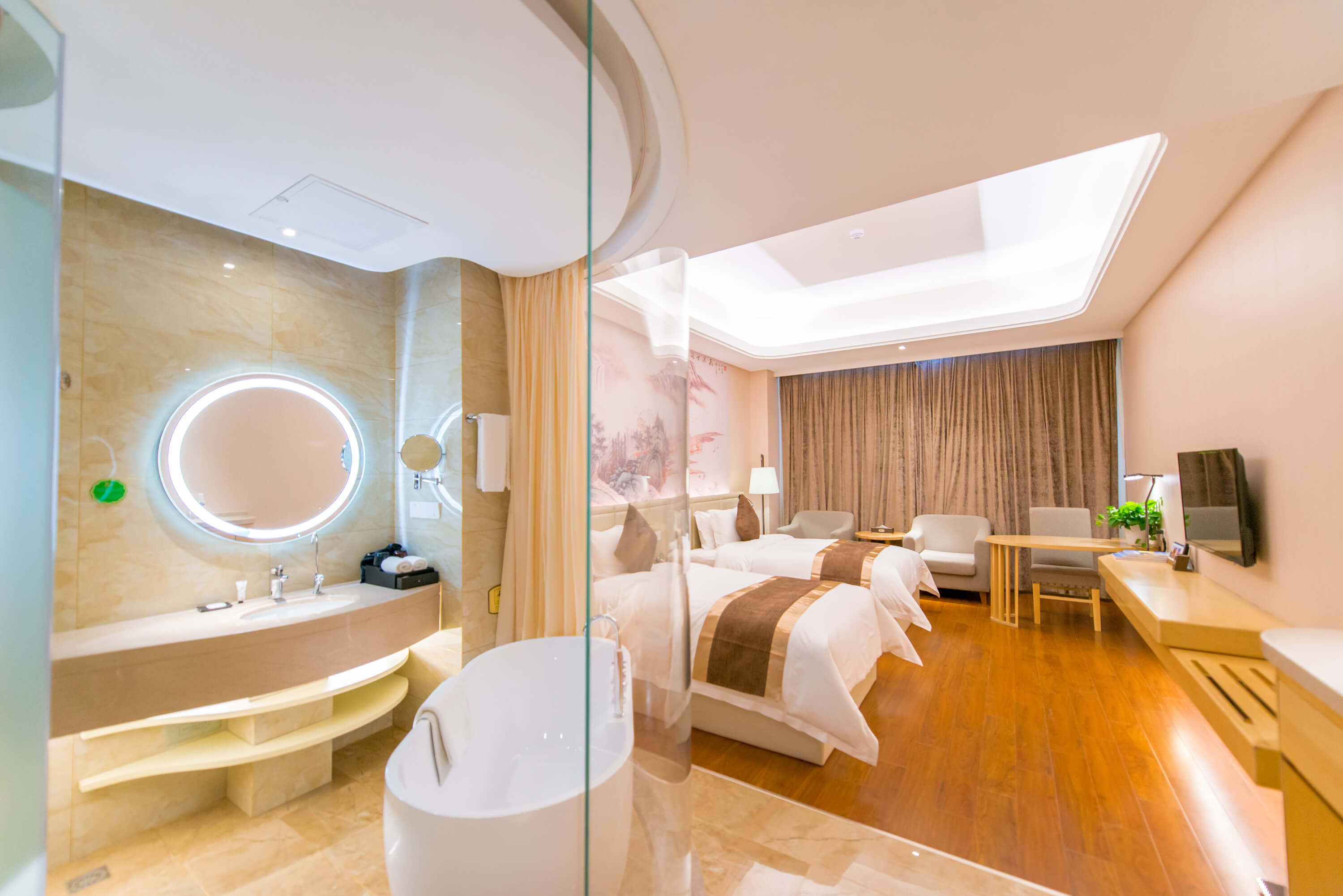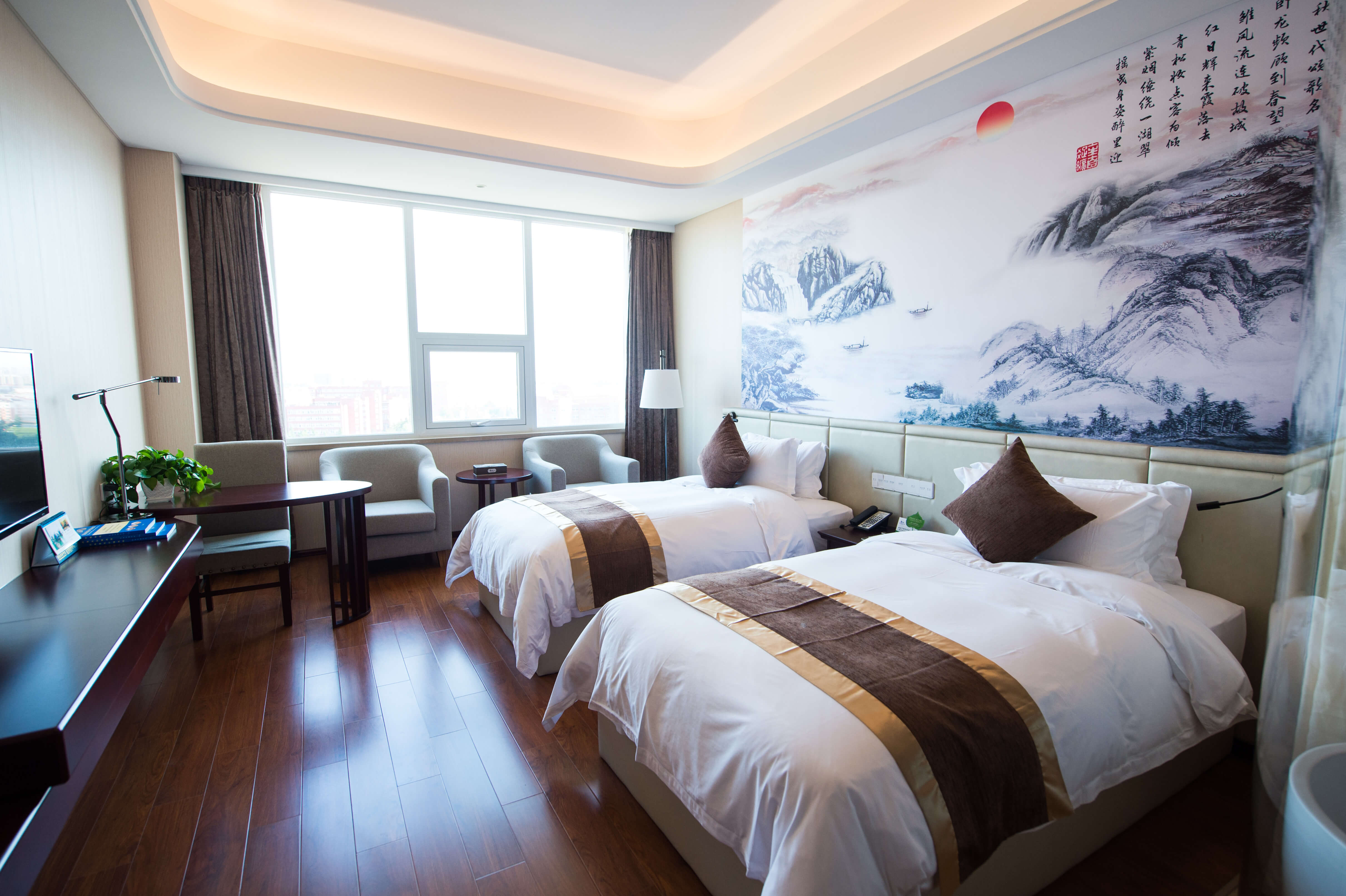房间面积:42㎡;分布在酒店4-18层,提供充裕的空间的商务双床房,既高档又雅静的中式装饰,增添了舒适的休闲感。房间采用流线型设计,开放式大圆弧形钢化玻璃卫生间,床上用品采用顶级白鹅绒制品、配有安全卫生的直饮水系统,卫浴系统为美国科勒卫浴系统,采用松下智能马桶,能让客人体验到安全舒适的住房感受。