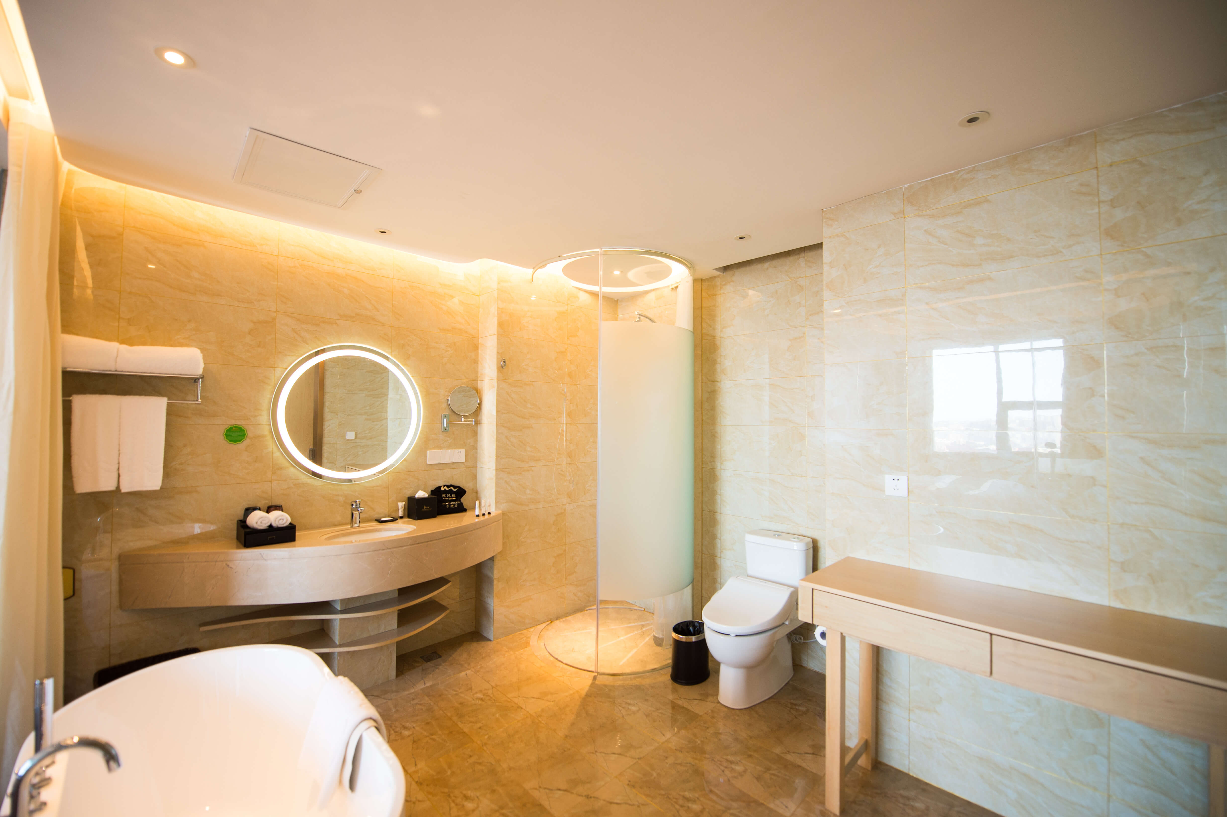 商务套房位于酒店4-20层,套房面积70㎡,一室一厅,客厅与卧室均配有独立的42英寸电视,卫生间干湿分离,有独立浴缸,配备的直饮水符合国家标准,可放心饮用,马桶选用松下品牌的全自动智能马桶盖;美国进口的金可儿床垫软硬适中,床上用品采用柔软的羽绒制品,非常舒适;迷你冰箱、保险箱、电子秤、开水器、吹风机、电话等生活用品一应俱全;客厅吧台设有电磁炉和洗菜盆,可以烹饪各种美食,家居感十足;联通房拥有两个卧室,空间宽敞,非常适合做为出门旅行的家庭用房。